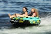 BLAST Inflatable Two Person Towable Soak up the sun and “have a blast" with one of the newest families in our line of towable tubes. The Blast 2 features space for two riders, a tropical themed partial tube cover, eight neoprene knuckle guard handles, dual tow points, and a Kwik-Connect for easily getting your tube out on the water. Our heavy-duty PVC bladder has electronically welded seams and a signature Speed Safety Value for quick inflating and deflating. Enhanced with double-stitching throughout the tube cover and a self-draining floor, the Blast 2 is ready for years of adventures out on the lake, at the beach, and beyond! Want to bring even more friends along? The Blast is also available in one, three, and four rider options!