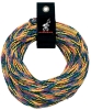 This 3/8" 16-strand braided tow rope is rated at 2,375Lbs. tensile strength. There's a 6" loop spliced at each end. A Rope Keeper is included for tangle-free storage. Designed for 1 and 2 rider tubes.