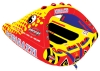 Catch a wave with the new Poparazzi for up to 3 riders! Its unique, high winged shape with rocker bottom allows you to carve into the wake and glide across the water's surface with minimal drag. Dimensions: inflated (77" x 80"), deflated (83" x 86"). Heavy-duty full nylon cover with zipper. High rise tower on rear deck. Patented speed safety valve for fast inflation and deflation. Patented aluminum quick connect tow system. Multiple riding positions: stand, kneel, sit, steer, lay. Wide wing span construction allows for tight turns and maneuverability. Multiple double webbing sure grip handles. EVA foam knee and knuckle guards. Self-bailing drain vents.