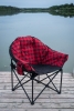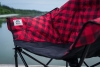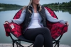 Supreme comfortability and ample space to kick back and relax. Fully padded seating including a convenient insulated drink holder. One size fits all, rated to 350 lbs. Durable ribbed 600D polyester fabric. Sturdy 3/4" black tube frame and stabilizer feet. Padded back & arm rests. Includes insulated beverage holder and carry bag. 34"H x 34"W x 27"D. Seat height: 16". Carry bag not covered under warranty.