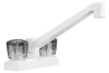 This lead free elegant faucet is made with premium grade lightweight synthetic waterway construction and has a sturdy design to keep the unit firmly in place on the sink top. The petite and classy design features dual smoked acrylic knobs which make for easy operation to quickly adjust the temperature and water flow. Drip free washerless cartridges and a convenient far reaching spout ensures that whatever you are cleaning, you'll be doing so comfortably. This 2-hole with 4" spacing faucet is CUPC certified and comes with our Dura Faucet Limited Lifetime Warranty.