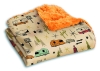 Luxurious plush throw 50" x 60". 100% polyester. One side minky pattern reverses to a velvety-soft solid pumpkin color faux fur.