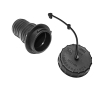 This cap, strap and spout is the original replacement for most gravity style fresh water fills. Cap has a tab style, non-threaded type twist lock to assure a good seal to your water fill. Strap is heavy duty plastic which holds up to the UV rays and weather better than most rubber styles. Spout is barbed for easy replacement and will accept either 1-1/4" or 1-3/8" water fill hose. Hose clamps are recommended for this replacement.