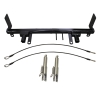 Custom fit bracket kit for attaching to cars frame to allow towing by motorhome or another tow vehicle.